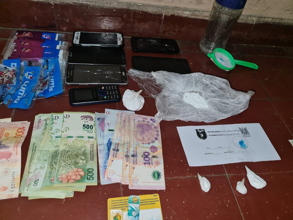 Cocaína dispuesta para el comercio. $ 182.050 6 Teléfonos Celulares Sobres de papel glasé (para el armado de los denominados "ravioles") dosificadores Elementos de corte, fraccionamiento y distribución. El magistrado interviniente dispuso, que se proceda al secuestro de los elementos reseñados, respecto del ciudadano José Darío M. sea notificado de los derechos que le asisten conforme al CPPN, y sea trasladado en Calidad de detenido comunicado a Comisaría de Jurisdicción y posteriormente a la U-32. Quien finalmente resulta detenido resultó poseer numerosos antecedentes por diversos ilícitos.