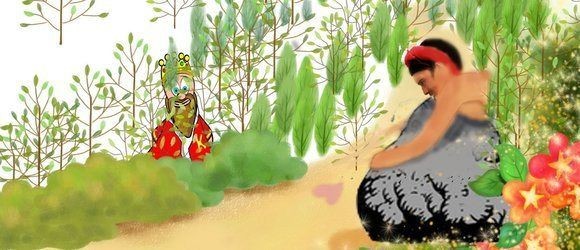 Un campesino se acercó entonces llevando una carga de verduras. Al acercarse al peñasco, el campesino dejó su carga y trató de empujar la piedra fuera del camino. Después de muchos empujones y esfuerzos, finalmente lo consiguió.