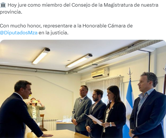 El legislador sureño, muy participativo en redes sociales, mostró la foto de su juramento, ante el consejo, y , pensamos sin saberlo, desnudo algo que está ocurriendo de hace años y que nosotros por ser, el único medio de Mendoza, que trata con responsabilidad informativa y cívica, desnudando y chequeando periodísticamente con rigurosidad extrema, podemos advertir la lectura de la foto con casualidades desde nuestra investigación que provocan sólo , una sensación concreta de estar detrás de algo muy delicado, muy grave, con manejos inescrupulosos, rayando hechos de corrupción y directamente corrupción propiamente dicha.