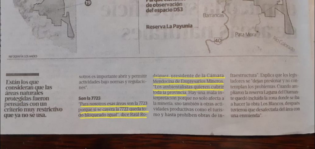 "SON LA 7723" DESTRATO E IMPUNIDAD DEL MAYOR LOBBISTA MINERO, AL REFERIRSE A LAS ÁREAS NATURALES PROTEGIDAS EN MENDOZA