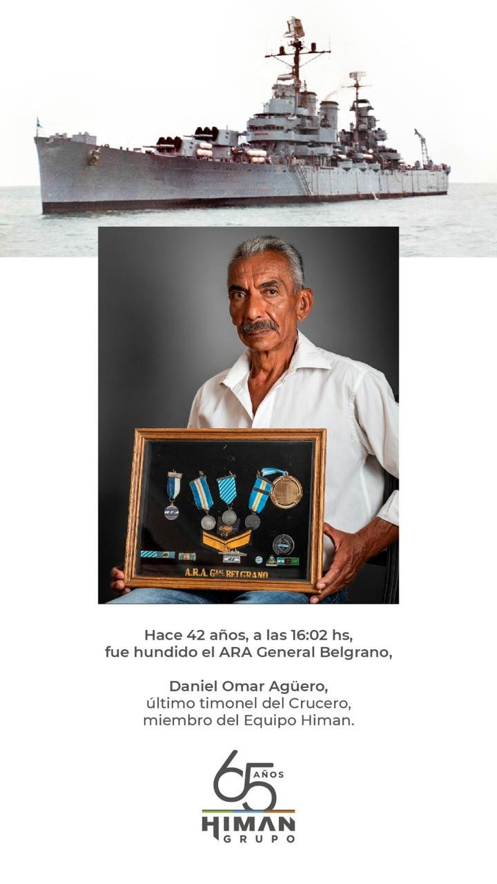 Daniel Agüero, veterano de guerra de Malvinas, es parte clave de esta historia: fue el timonel con tan solo 22 años, que le dio el último giro a babor, en el momento en el que el crucero era atacado.