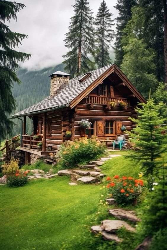 La cabaña que se muestra en la imagen es una representación artística de un entorno natural y acogedor. No es un lugar real específico, sino más bien una ilustración de un escenario ideal de cabaña en el bosque.
