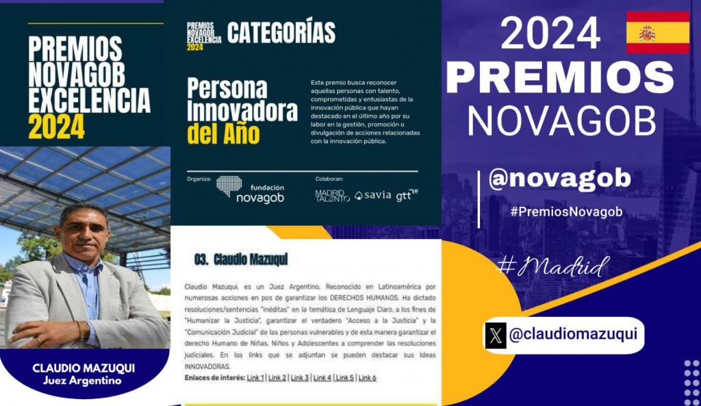 Nuevamente el reconocido Juez Cordobés, por su humanización de la justicia, aplicada a Niñez de su ámbito de trabajo, Huinca Renancó, está siendo reconocido, en este caso en España, con una nominación a los premios “Novagob Excelencia 2024”, por su trabajo de innovación en la justicia, siendo no solo el único argentino sino el único extranjero entre los potenciales nominados a recibir el premio.
