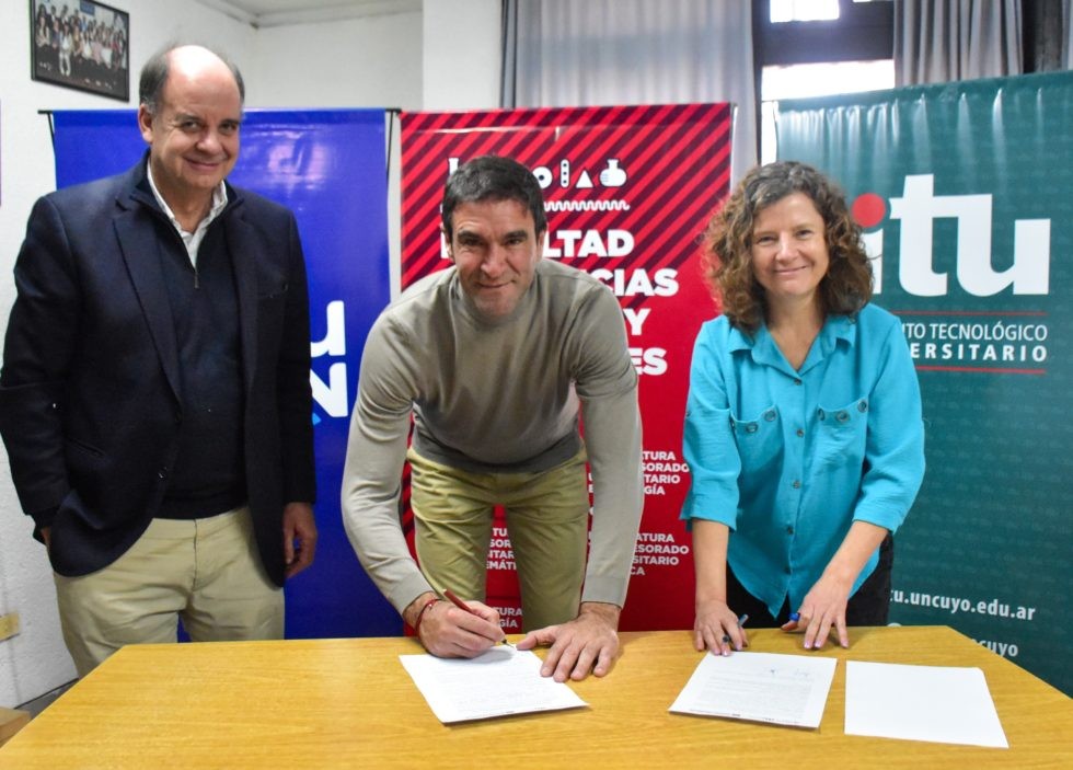 En el día de hoy, se llevó a cabo una reunión crucial en Tunuyán, donde Emir Andraos, Intendente de la localidad; Ariel Santolaya, Director de la Sede Valle de Uco del Instituto Tecnológico Universitario (ITU); Julieta Araníbar, Decana de la Facultad de Ciencias Exactas y Naturales de la Universidad Nacional de Cuyo (UNC); y Guillermo Cruz, Director General del ITU-UNCUYO, se unieron para firmar un importante convenio para la región, ya que traerá consigo el ciclo de ingreso y cursados básicos, de diferentes carreras de grado.