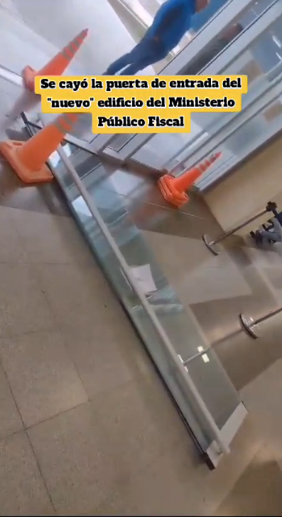 En el día de ayer se cayó sola, sin aviso, con peligro inminente una pesada puerta en el edificio del Ministerio público fiscal, haciendo correr peligro a muchas personas que se encontraban en el lugar, afortunadamente no hubo que lamentar personas accidentadas o heridas, pero esto es una demostración como se viene cayendo a pedazos hasta el moderno edificio.
