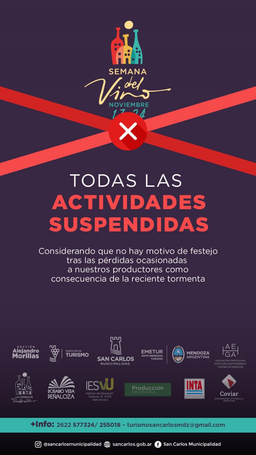 SAN CARLOS: SUSPENSIÓN DE ACTIVIDADES Y EVENTOS.