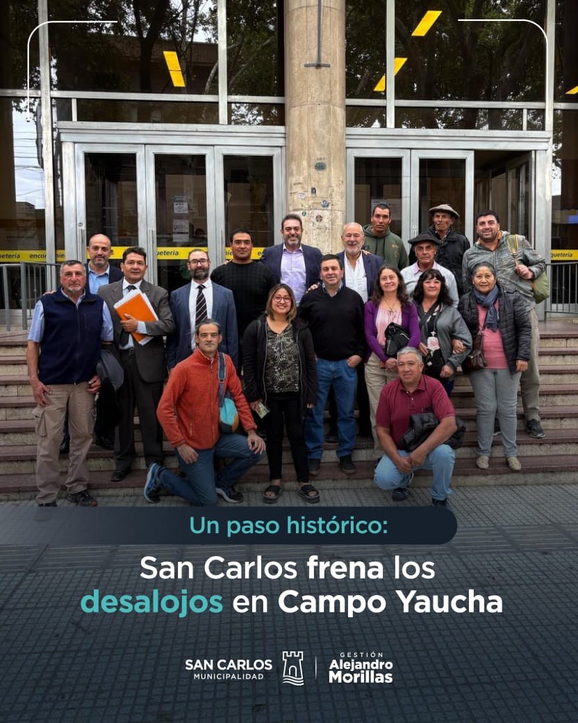 El Intendente Municipal Dr. Alejandro Morillas, el Secretario de Gobierno Dr. Sebastián Garro, el Dr. Gustavo González, defensor por la Municipalidad de San Carlos y puesteros de Campo Yaucha presenciaron la audiencia prevista junto al Juzgado Federal de Mendoza. Allí se presentó la documentación correspondiente en dónde se aclara el Proyecto Turístico Integral elaborado por el Municipio, para que puesteros de la zona trabajen en conjunto y así no ser desalojados. Este convenio permitirá desarrollar Campo Yaucha de manera turística y productiva, beneficiando a todas las partes y asegurando el futuro de quienes han habitado estas tierras por generaciones. Porque no hay mejor manera de defender el agua y el suelo sancarlino que reintegrándoselo a su legítimo poseedor. También se logra paralizar la venta de tierras gracias a la predisposición y escucha del Ministro de Defensa Luis Petri, quien estudiará este proyecto.