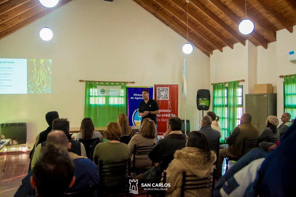 La jornada contó con la presencia del Director de Agricultura de la Provincia, Alfredo Draque, el Director de Producción e Industria de la Municipalidad de San Carlos, Gonzalo Appiolaza, el Presidente de la Sociedad Rural, Mario Leiva y representantes del Consejo Federal de Inversiones. Se abordaron temas como herramientas de financiamiento para mejorar la competitividad, acercando las oportunidades que ofrecen tanto el Fondo de Transformación y Crecimiento como el CFI. Además se explicó una nueva normativa que entrará en vigor en la próxima cosecha y que será de cumplimiento obligatorio. El público presente se mostró muy interesado en cada temática ya que son recursos que buscan ayudar y motivar a los productores para mejorar y aumentar sus ventas. Desde la Municipalidad de San Carlos, se trabaja mancomunadamente con la provincia para planificar el trabajo en red y optimizar los logros de los agricultores.