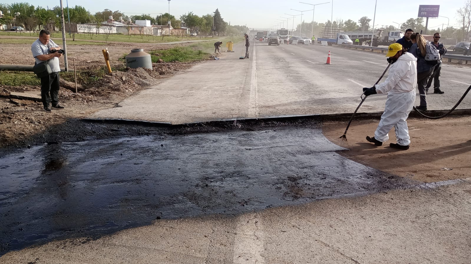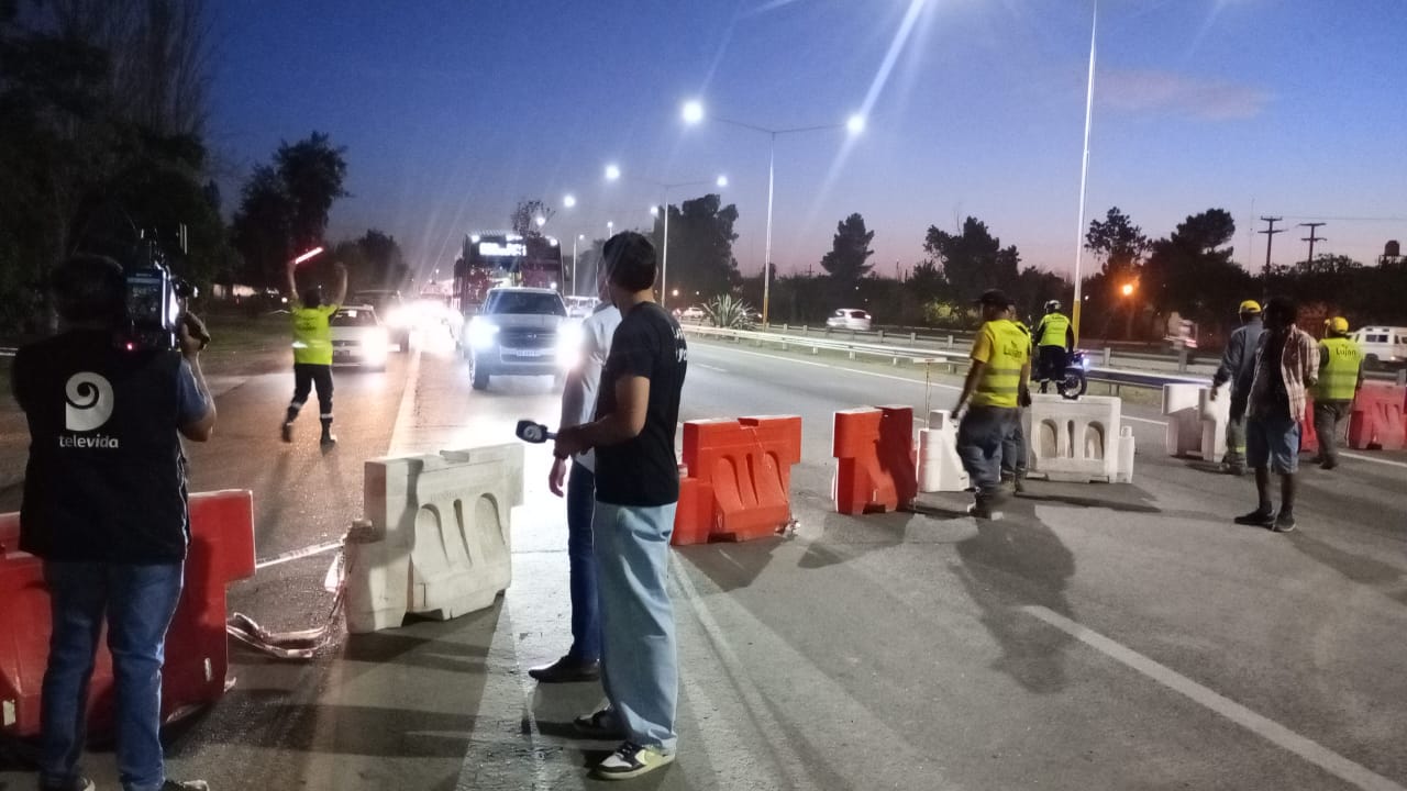El operativo también incluyó 10.000m² de limpieza con barredoras y regaderas, así como la ejecución de bypasses vehiculares: uno de 500 metros por colectora Este con rampa de retorno estabilizada, y otro de 200 metros por cantero central, para garantizar la circulación Norte–Sur y Sur–Norte durante las obras