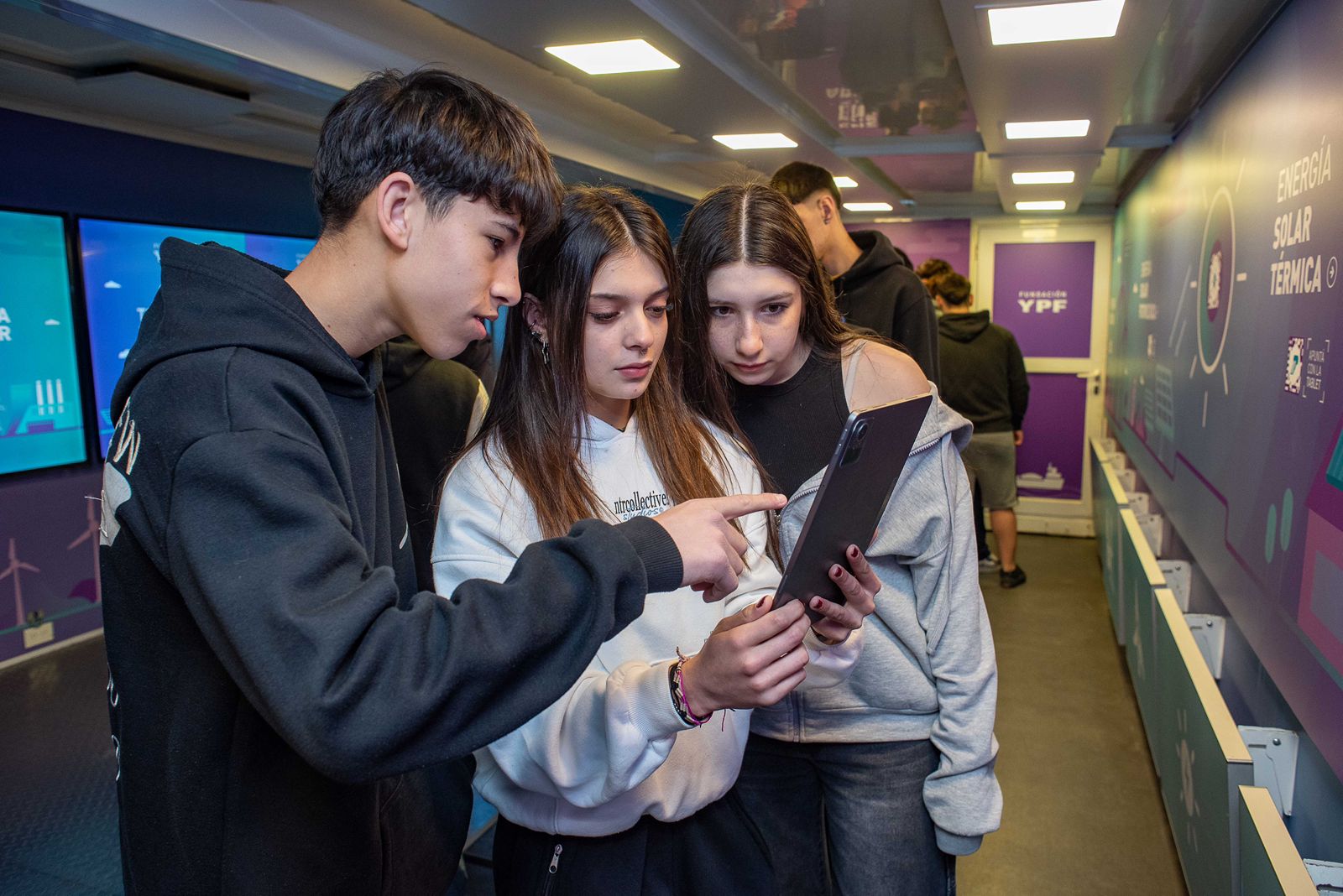 El Aula Móvil de Fundación YPF llega con una versión completamente renovada, que incluye nuevos contenidos y recursos didácticos. A través de paneles interactivos, los visitantes podrán explorar los principales proyectos energéticos del país, como Vaca Muerta, el Gas Natural Licuado (GNL) y las fuentes térmica, eólica y solar.