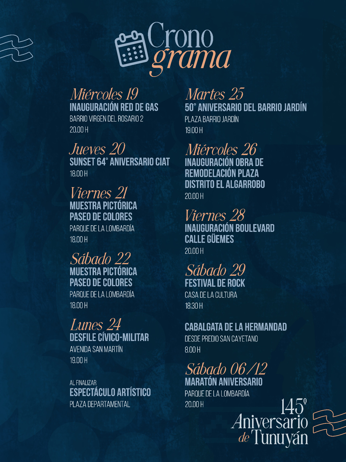 Hoy es Sábado 22 de Noviembre de 2025 y son las 10:58 - Celebramos el 145° Aniversario de Tunuyán / Viento zonda: la Municipalidad de Tunuyán desplegó un operativo simultáneo en todo el departamento / Sáenz volvió a criticar al Gobierno por la falta de respuestas: ?Estamos esperando que el poncho aparezca? / La UCR fijó la fecha para elegir al sucesor de Martín Lousteau al frente del Comité Nacional / La morosidad de las familias casi se triplicó en el último año / El billete de $20.000 cumple un año en circulación: qué se podía comprar cuando salió y para qué alcanza hoy / El gigante de Europa que está tras los pasos del Dibu Martínez para ganar la Champions League / La justicia que necesitamos, fue ratificado el pliego de Rebeca Ropero / No sos vos, soy yo / Tupungato cerró sus festejos de Aniversario con el anhelado Desfile Cívico Militar Escolar / Luján de Cuyo, potencia mundial: tres bodegas en el Top 10 y ocho entre las mejores 50 según Forbes / Alarmante aumento de suicidios policiales en Mendoza, lamentable tasa comparativa a nivel Nacional y Mundial / Luján de Cuyo coronó a las Reinas Distritales de Potrerillos y Mayor Drummond / Abren convocatoria para elegir la sucesora de la Reina del Adulto Mayor 2025 en Tupungato / Más de 30000 espectadores tuvo el Festival Aniversario de Tupungato cargado de anécdotas, alegrías, buena música y emoción / Facundo Arana presenta "En el Aire" en el Auditorio Municipal de Tunuyan / Tunuyán trabaja en la mejora genética ganadera para fortalecer el sector en el departamento / ¿ HACIA DÓNDE VAMOS? RUSIA CREA UN EJERCITO DE NIÑOS UCRANIANOS PARA MATAR A SU PROPIO PUEBLO / El rock local se celebra en el marco del 145° Aniversario de TUNUYÁN / NATURALEZA VIVA.- /