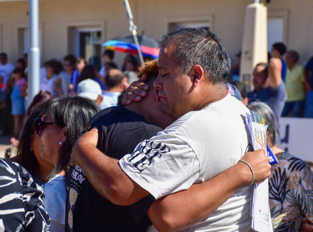El Intendente Emir Andraos felicitó a cada familia remarcando el valor social del proyecto y el esfuerzo de los vecinos de Vista Flores: “Es una felicidad enorme llegar acá y ver tantas familias, tantos niños, y poder concretar hoy un sueño que esta comunidad comenzó a construir hace 20 años”. También agradeció el trabajo de la Unión Vecinal, con quienes han trabajado incansablemente “Ha sido un largo proceso donde intervino el IPV, nosotros como Municipio hicimos un gran aporte para la urbanización, radicación de árboles, extensión de la red de cloacas y agua, maquinarias y sobre todo el acompañamiento a la Unión Vecinal que son quienes pujaron esta obra por más de dos décadas”.