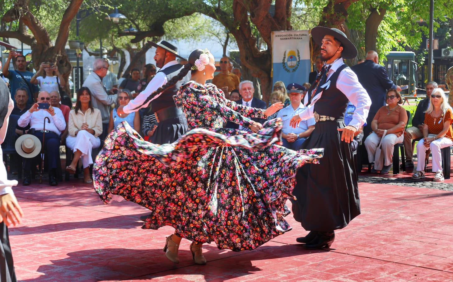 La jornada incluyó el ingreso de abanderados y escoltas, el acompañamiento musical de la Banda Militar General Espejo y presentaciones artísticas a cargo del Ballet Municipal, que aportaron un marco cultural y simbólico a la conmemoración.