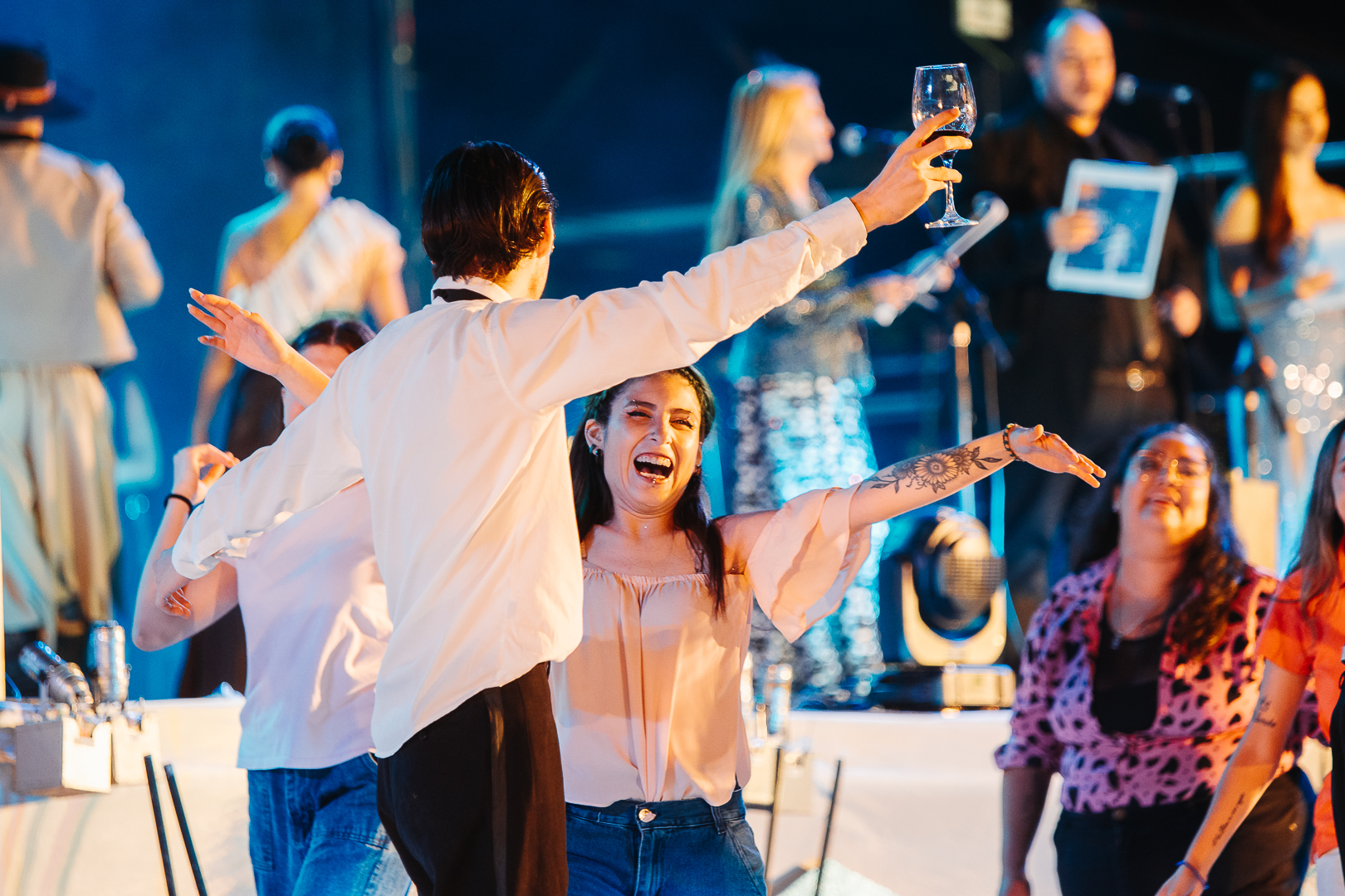 El pasado sábado 7 de febrero en el Teatro Griego Municipal, vecinos y turistas compartieron una noche cargada de emoción, tradición y orgullo tupungatino, en el marco de los 90 años de historia vendimial de Mendoza. Bajo el nombre “Historias de pueblo y vecinos”, la fiesta reunió a más de 250 artistas en escena, músicos, bailarines y actores que dieron vida a un espectáculo que recorrió la memoria viva de Tupungato, poniendo en valor a las personas que, con esfuerzo cotidiano, construyen su terruño. La puesta artística fue acompañada por un marco colorido de las barras que alentaban a las siete candidatas, que colmaron las gradas y vivieron cada momento con aplausos, cantos y emoción. El evento tuvo la presencia de autoridades del ejecutivo provincial y local además de funcionarios de diversos departamentos que acompañaron al Intendente Gustavo Aguilera en la celebración de la cosecha del departamento que comanda. También en su noche de despedida la Reina Nacional de la Vendimia 2025 Alejandrina Funes y su Virreina Sofía Perfumo acompañaron a la Reina de Tupungato Julieta Renzi y a su Virreina Celina Flores. Además participaron de la fiesta Reinas de mandato cumplido de toda la provincia y por supuesto de Tupungato, los jóvenes Representantes Estudiantiles 2026 y reinas invitadas. La noche comenzó con la Previa Vendimial, sobre las gradas el Paseo Artesanal, los emprendedores locales y los foodtrucks aportaron sus producciones y sabores a la celebración, fortaleciendo la economía social y el encuentro. Apenas iniciado el evento se realizó el esperado sorteo de las dos cifras que habilitaron a los votantes a elegir su candidata favorita, la Escribana Noelia Camisay fue la encargada de sacar las bolillas que resultaron tener los números 8 y 9. Después en escenario el conjunto musical sancarlino Acorde Campero brindó un aplaudido show de tradición con un variado de chamamé.