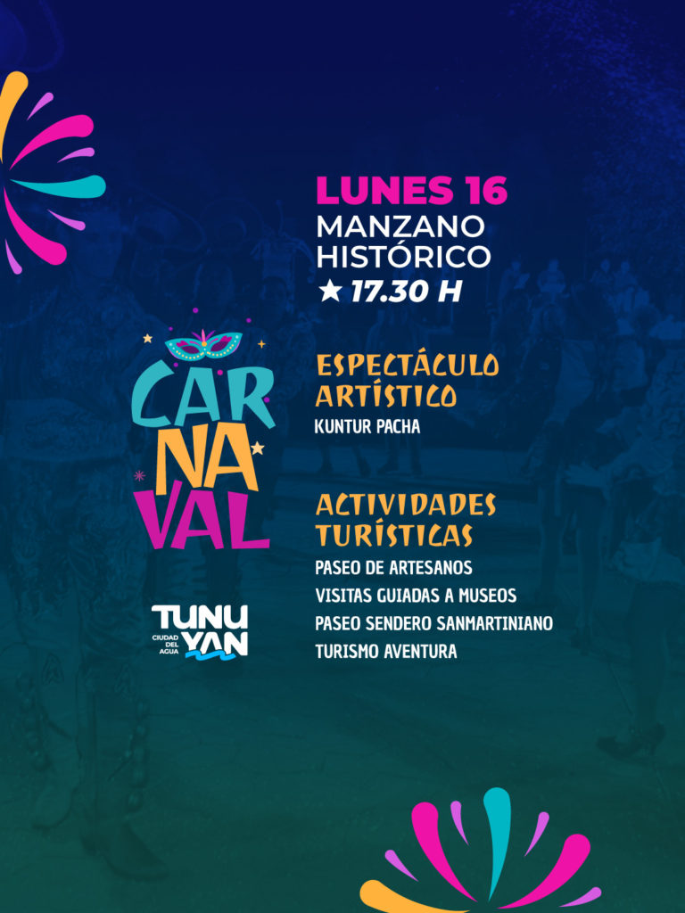 La Municipalidad llevará adelante dos jornadas de carnaval el domingo 15 y el lunes 16 de febrero, con propuestas abiertas a la comunidad en distintos puntos del departamento. Las actividades se realizarán el domingo desde las 19.30 horas en la plaza central y el lunes a partir de las 17:30 horas en el paraje Manzano Histórico. Palpitando la llegada de turistas en el primer fin de semana XXL del año, Tunuyán busca ofrecer espacios de encuentro y recreación para toda la familia.