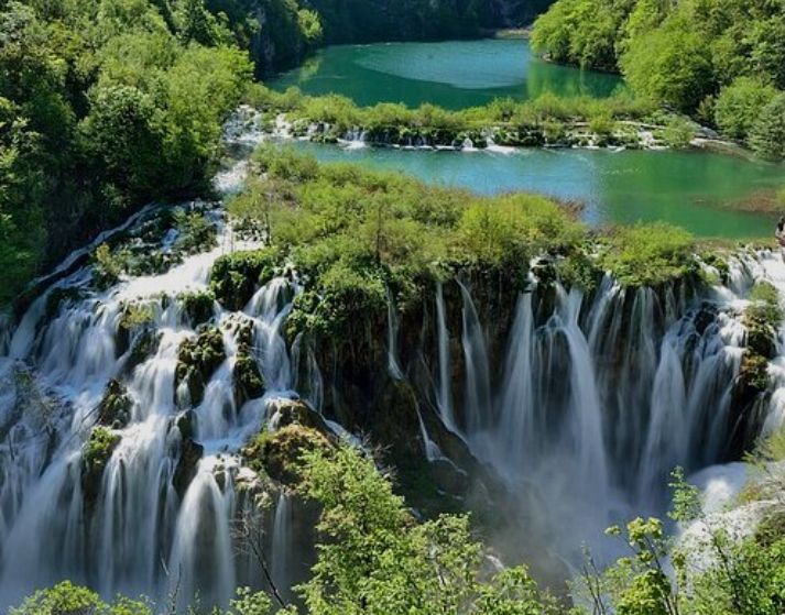El Parque Nacional de los Lagos de Plitvice en Croacia es conocido por sus 16 lagos de agua cristalina, cascadas y bosques de hayas, abetos y pinos.