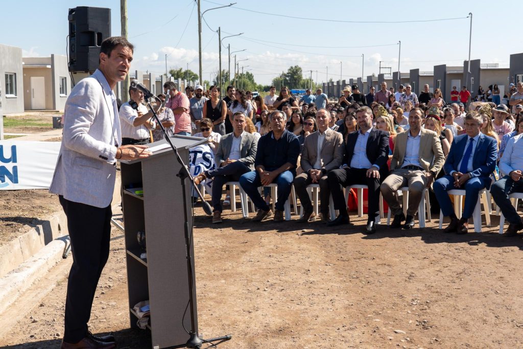 El acto fue encabezado por el intendente Emir Andraos y marcó el inicio formal del cronograma de adjudicación de 300 casas. Estuvieron presentes el diputado nacional Martín Aveiro, la vicegobernadora Hebe Casado, la subsecretaria de Infraestructura y Desarrollo Territorial del Gobierno de Mendoza, Marité Badui, integrantes del gabinete municipal, miembros del Concejo Deliberante, vecinos y adjudicatarios junto a sus familias. “Había que decidir si mirar para otro lado o hacernos cargo. Y esta gestión decidió hacerse cargo, con trabajo administrativo, financiero y jurídico”, expresó el jefe comunal durante su discurso. La programación establece la entrega de casas por etapas y anticipa nuevas adjudicaciones en las próximas semanas.