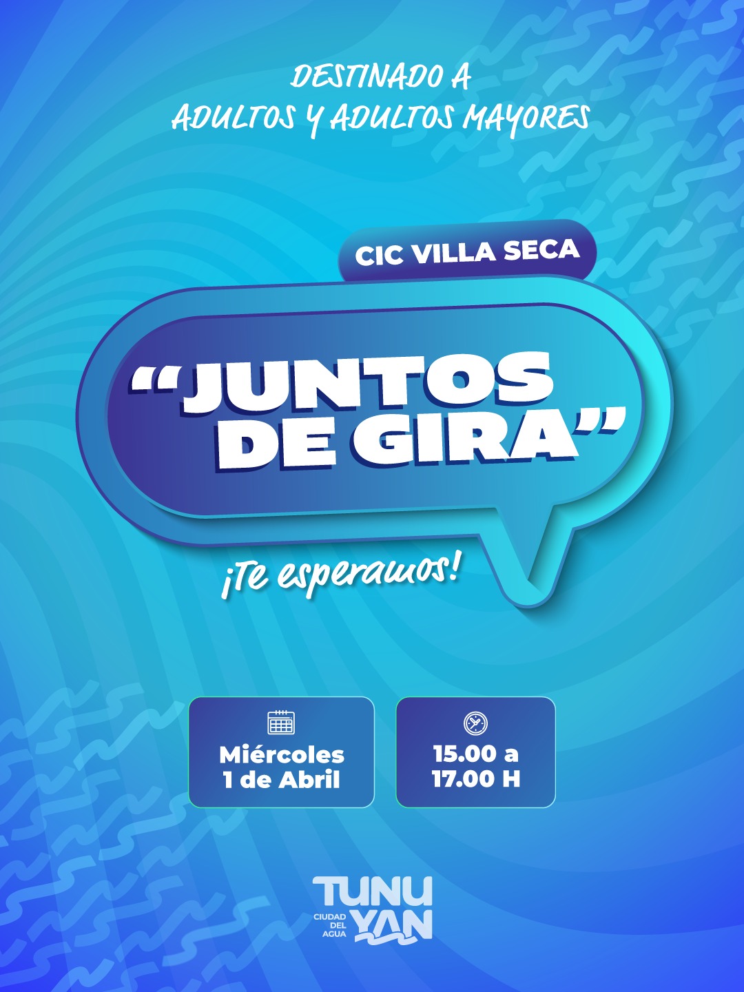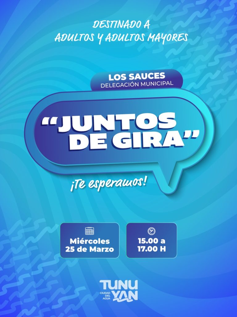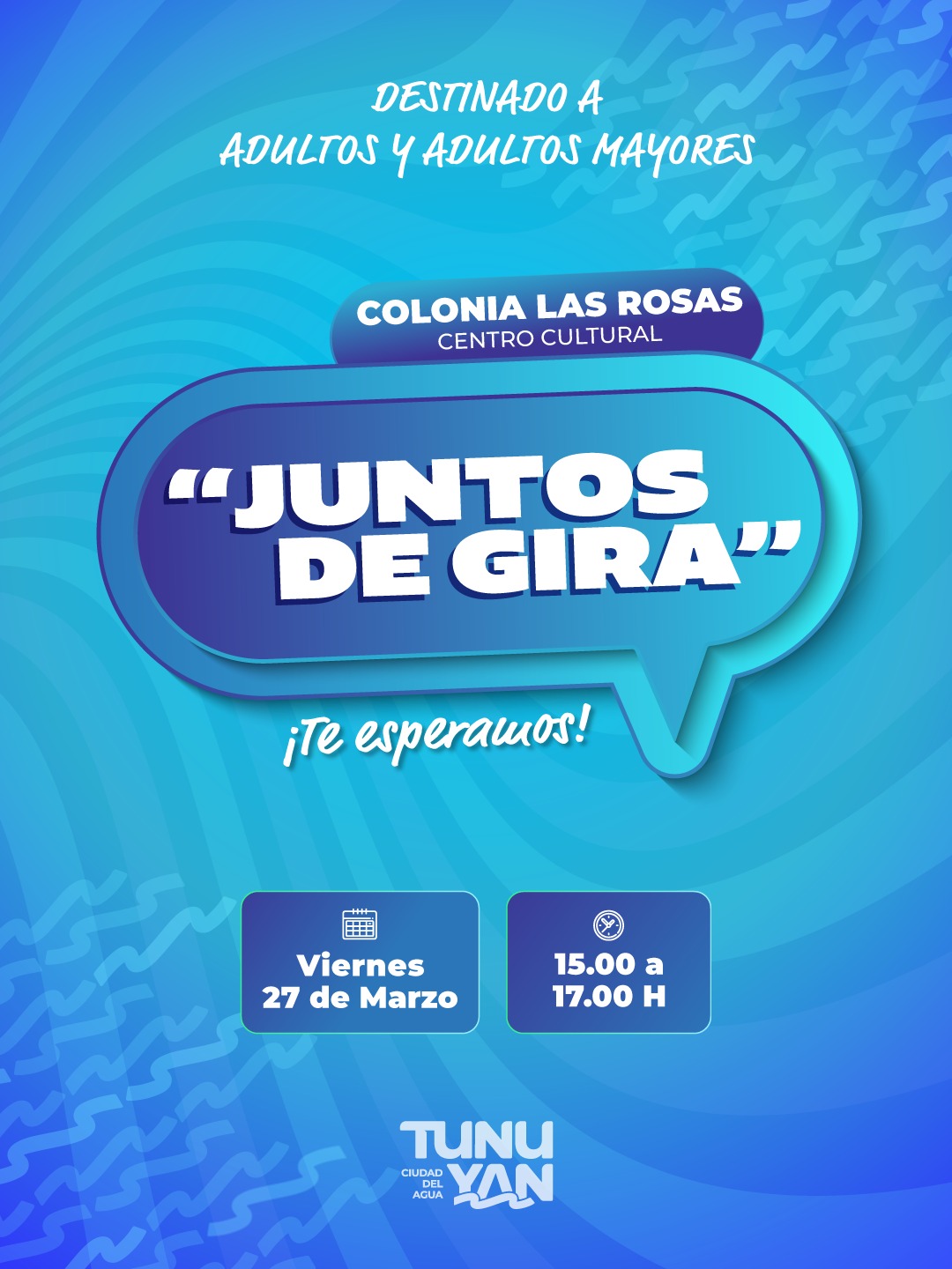 Tunuyán pone en marcha una nueva edición del programa municipal Juntos de Gira, una propuesta socio recreativa, cultural y participativa destinada a personas adultas y adultas mayores. El ciclo se desarrollará en distintos espacios comunitarios del departamento, con encuentros de 15 a 17 horas, y es organizado por la Municipalidad junto a la Jefatura de Adultos Mayores y el área de Gestión Social. La iniciativa convoca a la participación abierta y recorrerá diferentes distritos a lo largo del año.
