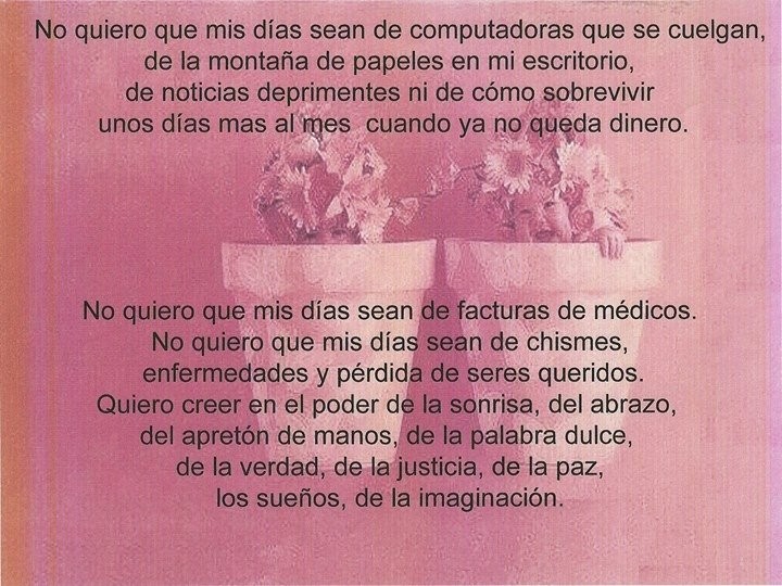 QUIERO CREER EN EL PODER DE LA SONRISA, DEL ABRAZO, DEL APRETÓN DE MANOS, DE LA PALABRA DULCE, DE LA VERDAD, DE LA JUSTICIA, DE LA PAZ, LOS SUEÑOS Y DE LA IMAGINACIÓN.-
